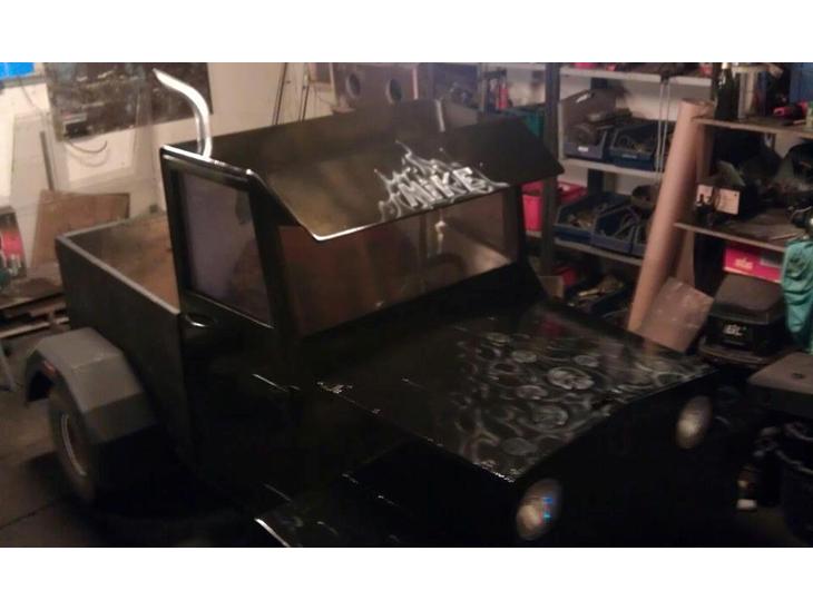 Min fætter har bygget denne fede "mini-bil" til han knægt, hvilket han bedte pænt min om at airbrushe i lidt råt tema. Så det blev gost-flames og skulls.
