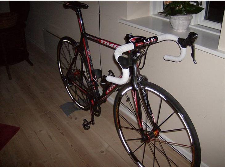 det min nummer 2 time cykel smadrede den anden ramme i et styrt. har ikke vejet den endnu. men den ligger rigtig tæt på 6.8 kg med zipp 202 tror jeg den kommer ned på 6.6 kg ca. sadlen rammen og styret er nyt det andet er fra sidste år og sad på den anden time. dunk holderne og kranksættet skal også lakeres så det passer med rasten af cyklen.